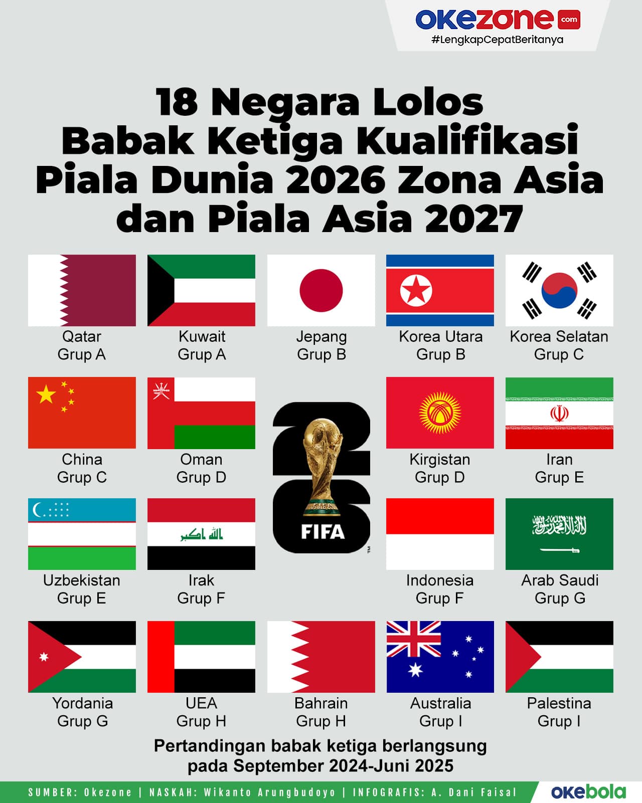 Kriteria Lolos: Pemenang dan runner-up dari setiap grup (total 12 tim) akan mendapatkan sisa tiket untuk melengkapi 48 peserta Piala Asia 2026.